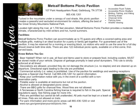 · For park information and more picnic areas call 865-436-1200 or visit