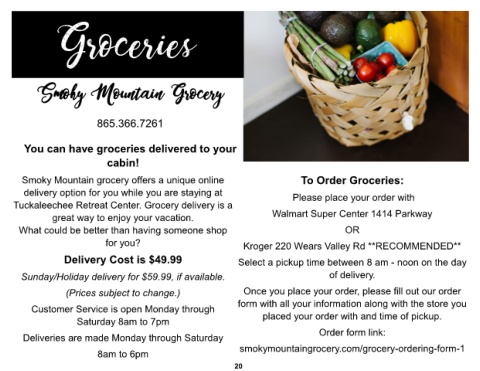 Tuckaleechee Retreat Center. Grocery delivery is a