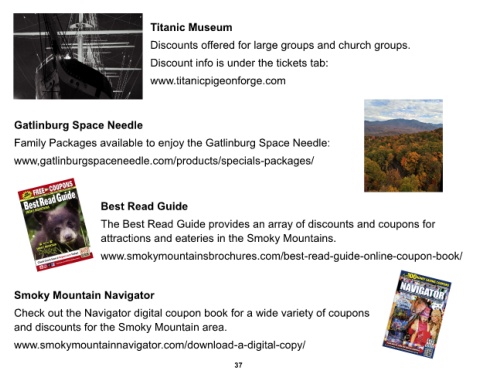 and discounts for the Smoky Mountain area.