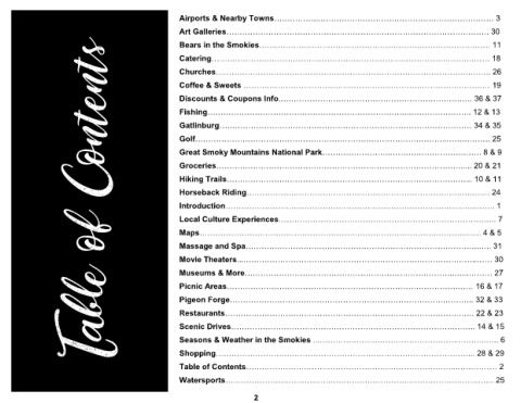 Pigeon Forge……………………………………………………………………….……….. 32 & 33